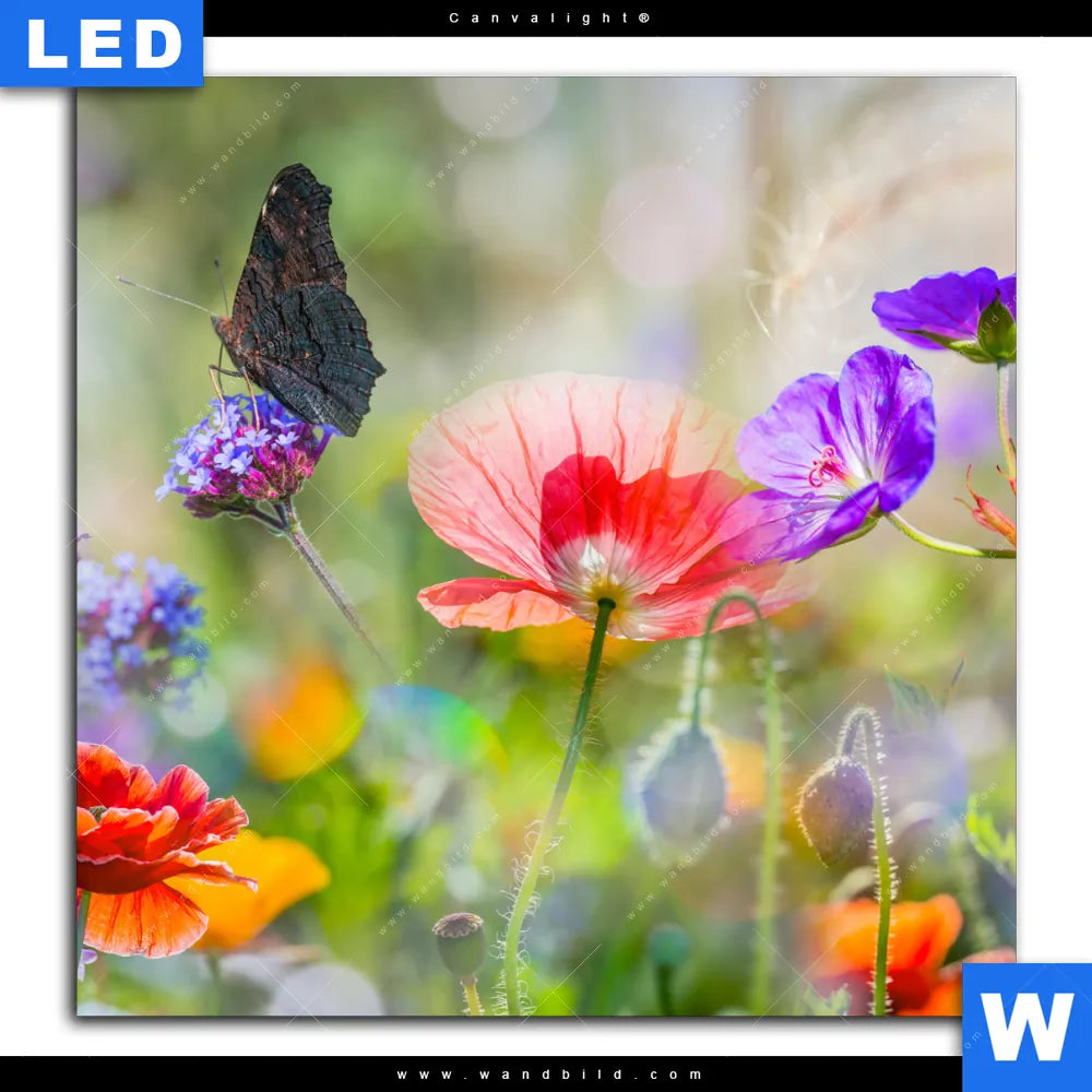 Canvalight® TEX Leuchtbild | Blumenwiese mit Schmetterlingen | Quadrat