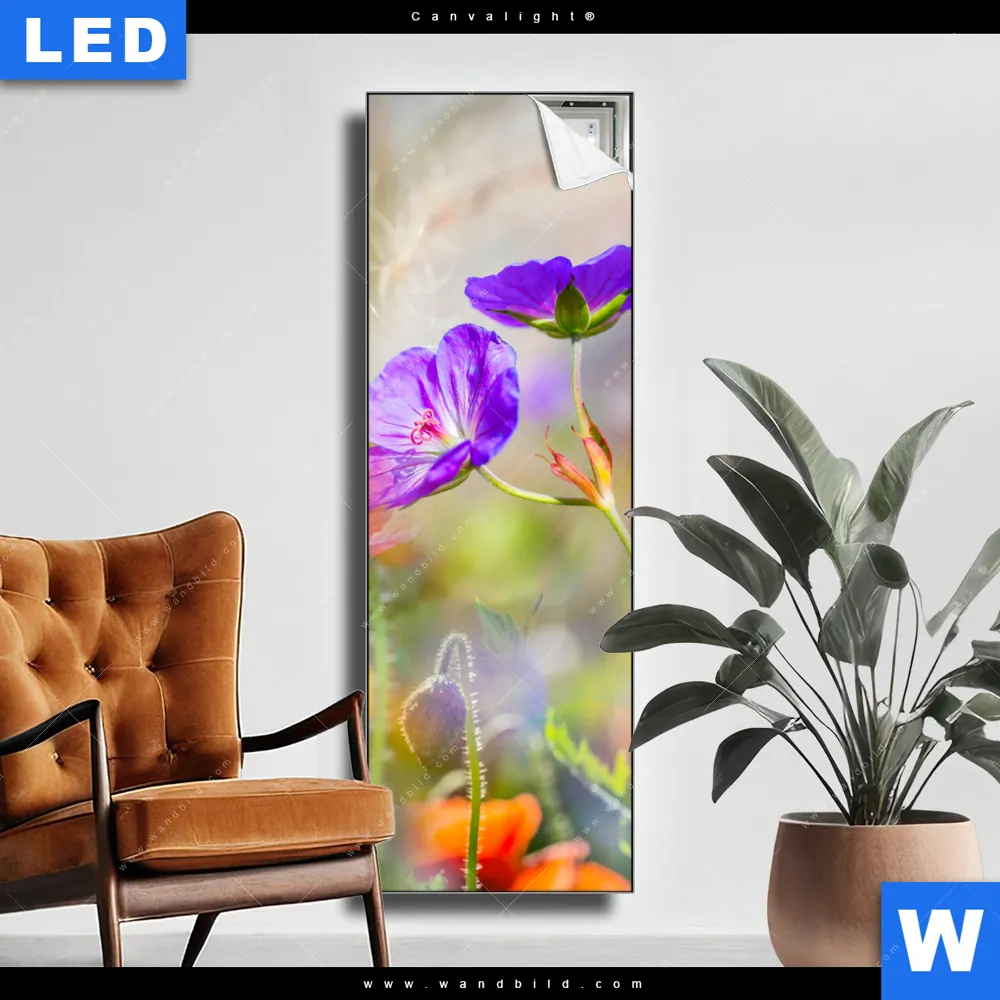 Canvalight® TEX Leuchtbild | Blumenwiese mit Schmetterlingen | Schmal
