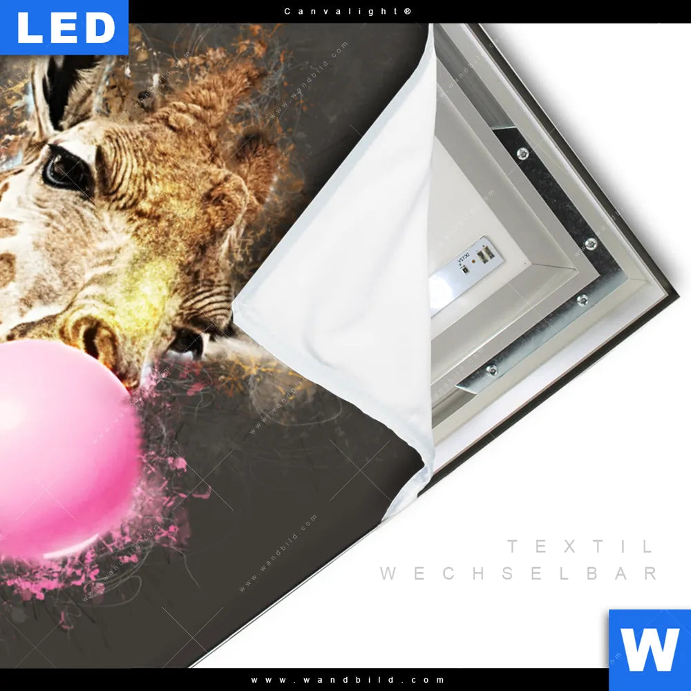Canvalight® TEX Leuchtbild | Bubble Gum Giraffe | Hochformat