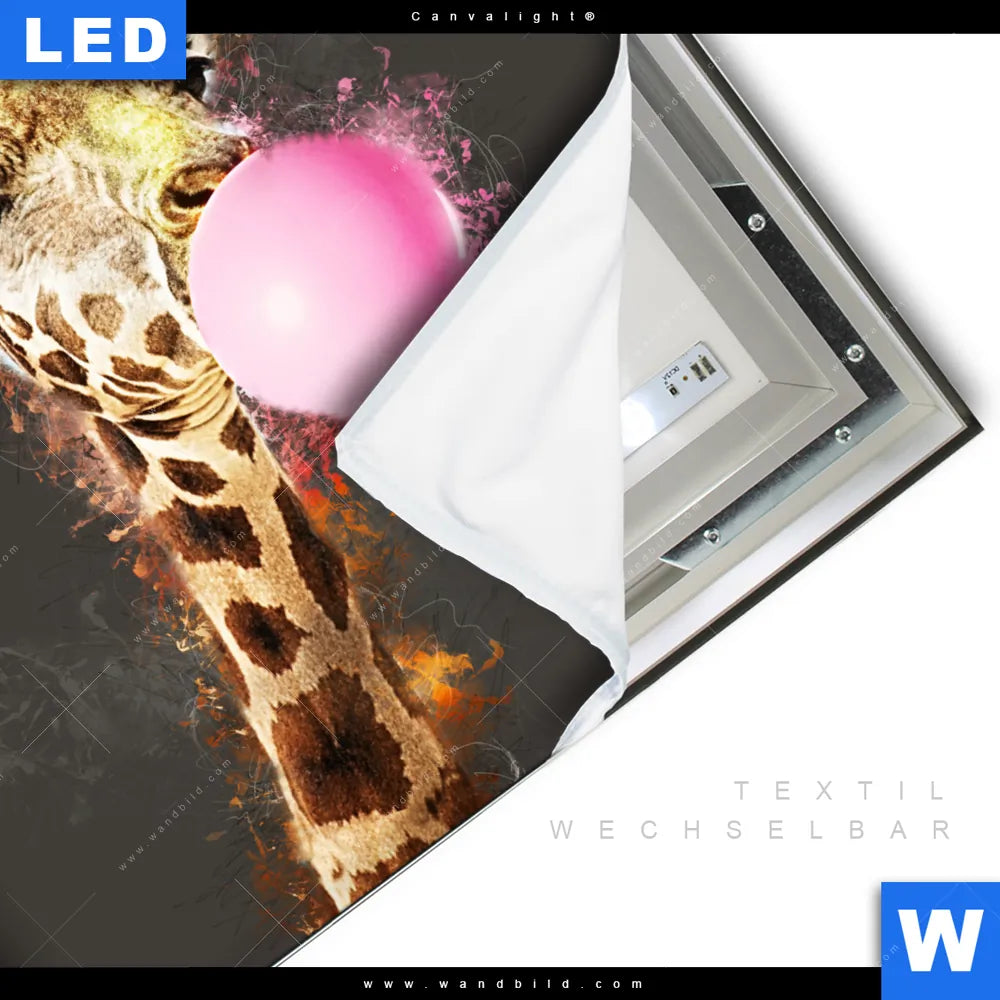 Canvalight® TEX Leuchtbild | Bubble Gum Giraffe | Quadrat