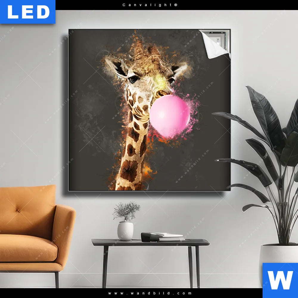 Canvalight® Leuchtbild | Bubble Gum Giraffe | Quadrat