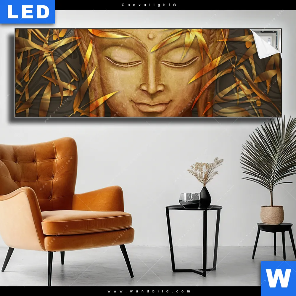 Canvalight® TEX Leuchtbild | Buddha & Bambus in Gold | Panorama