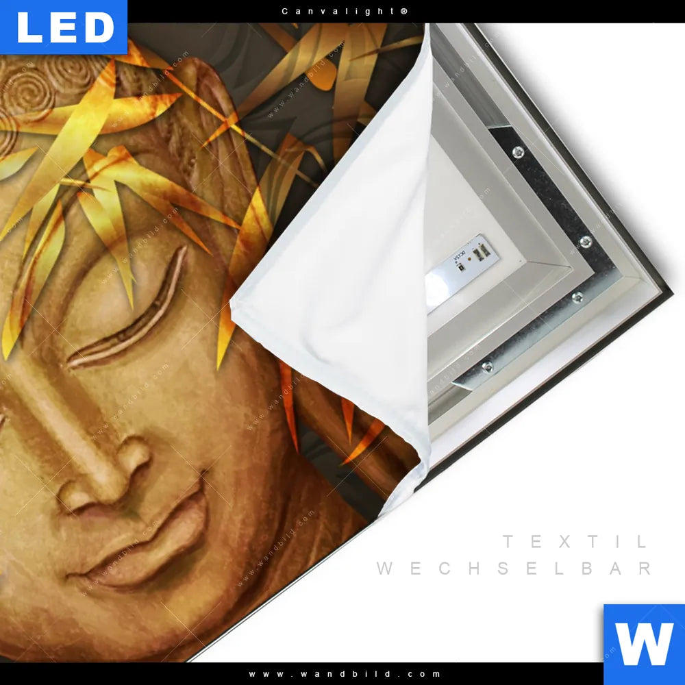 LED-Textilrahmen-Bild mit austauschbarem Buddha - Feng Shui Textil-Druck (Wechselbild)