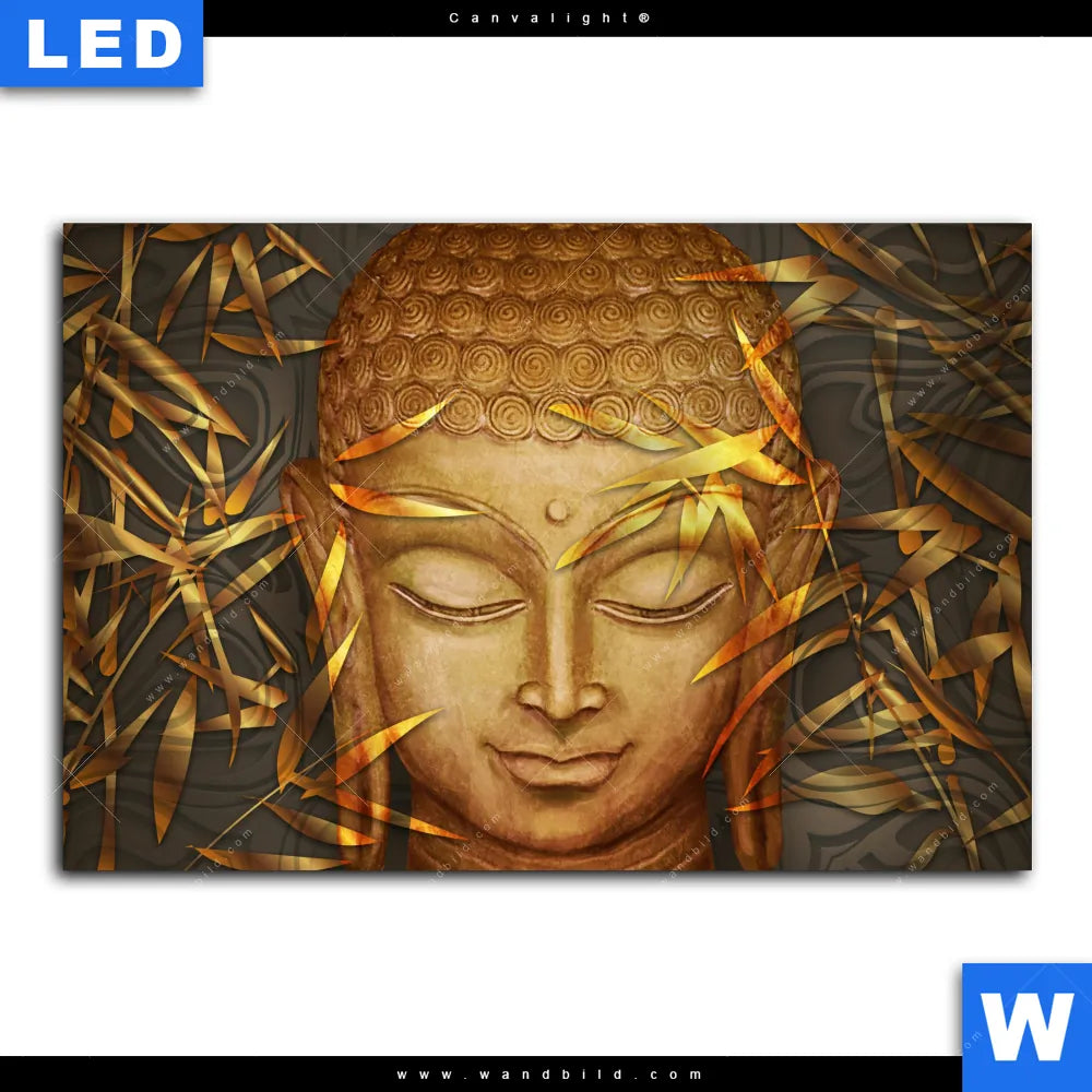 Canvalight® Leuchtbild | Buddha & Bambus in Gold | Querformat