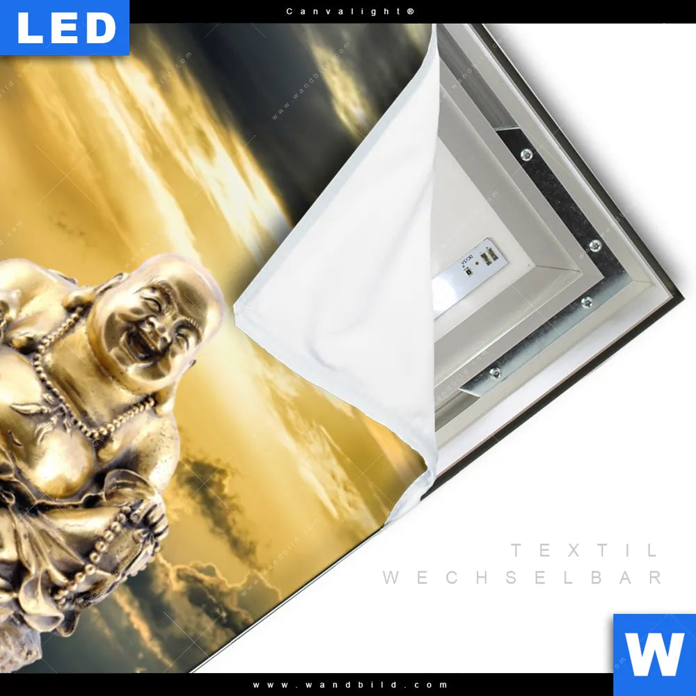 LED-Textilrahmen-Bild mit austauschbarem Buddha - Feng Shui Textil-Druck (Wechselbild)