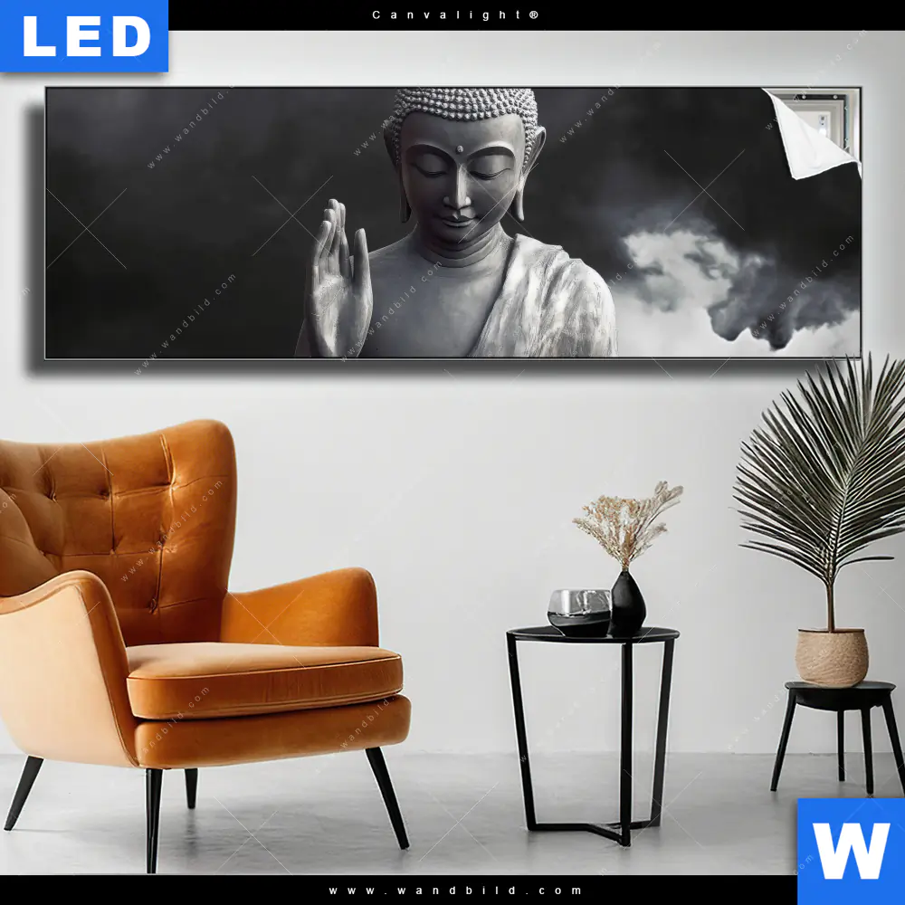Canvalight® Leuchtbild | Buddha - Erleuchtung im Dunkeln | Panorama