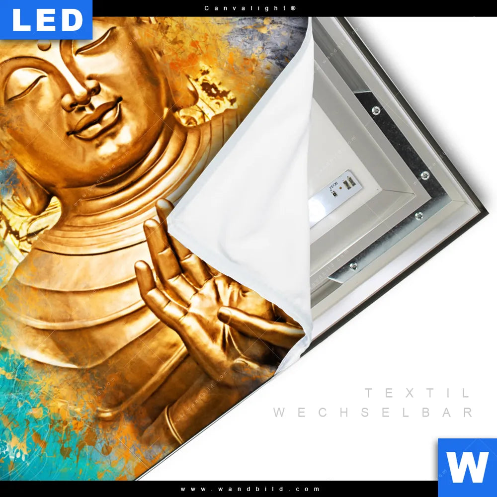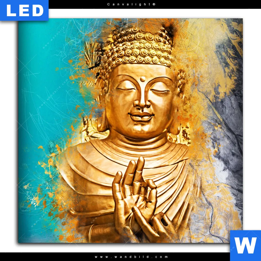 Canvalight® TEX Leuchtbild | Buddha Gold & Türkis | Quadrat