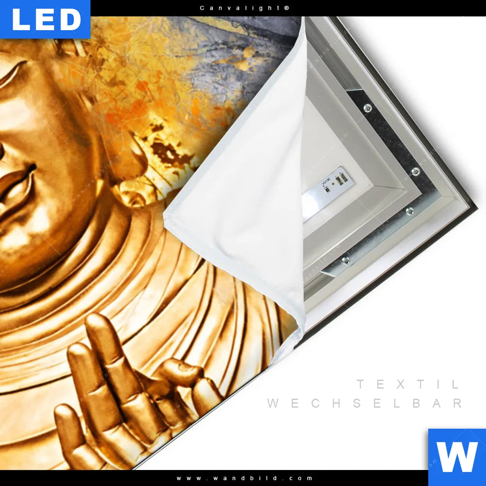 LED-Textilrahmen-Bild mit austauschbarem Buddha - Feng Shui Textil-Druck (Wechselbild)