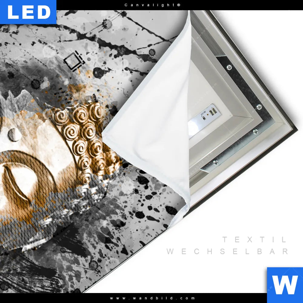 LED-Textilrahmen-Bild mit austauschbarem Buddha - Feng Shui Textil-Druck (Wechselbild)