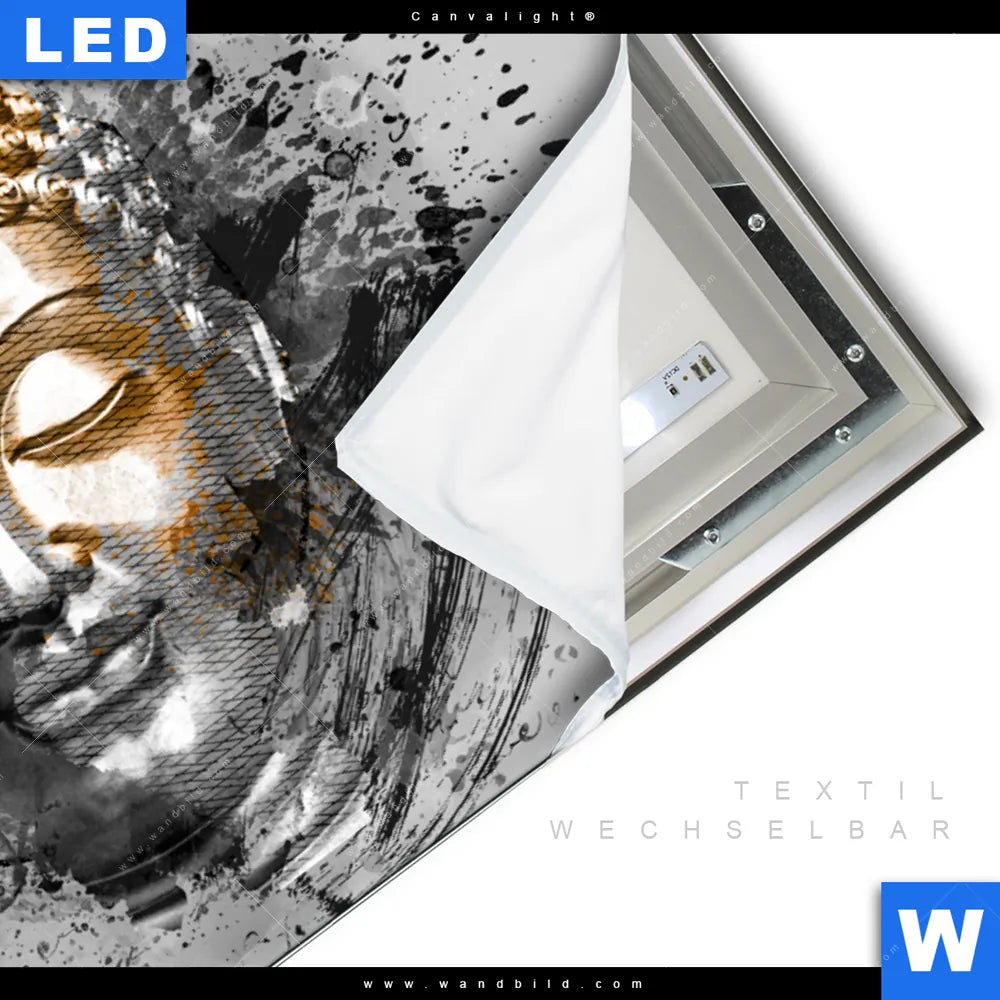 LED-Textilrahmen-Bild mit austauschbarem Buddha - Feng Shui Textil-Druck (Wechselbild)