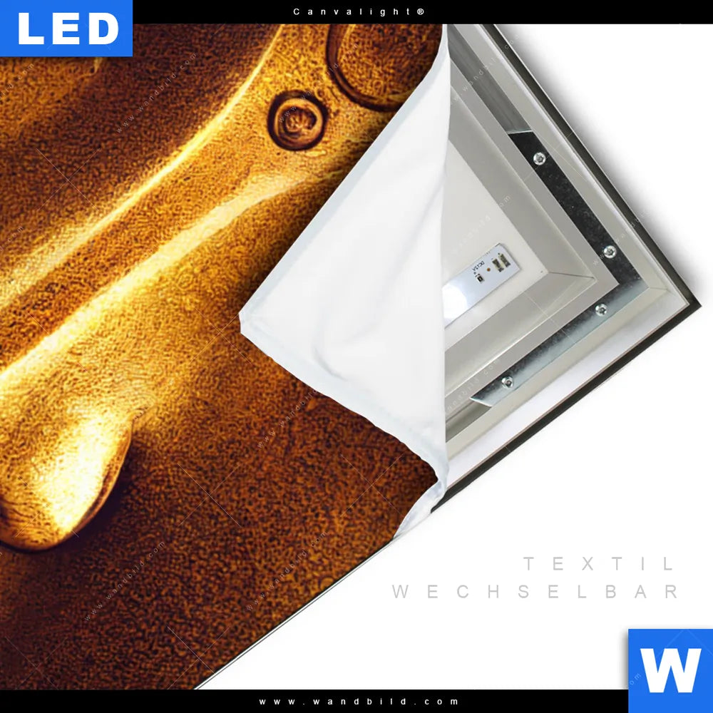 LED-Textilrahmen-Bild mit austauschbarem Buddha - Feng Shui Textil-Druck (Wechselbild)