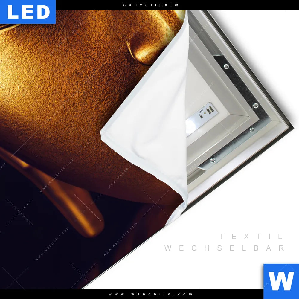 LED-Textilrahmen-Bild mit austauschbarem Buddha - Feng Shui Textil-Druck (Wechselbild)