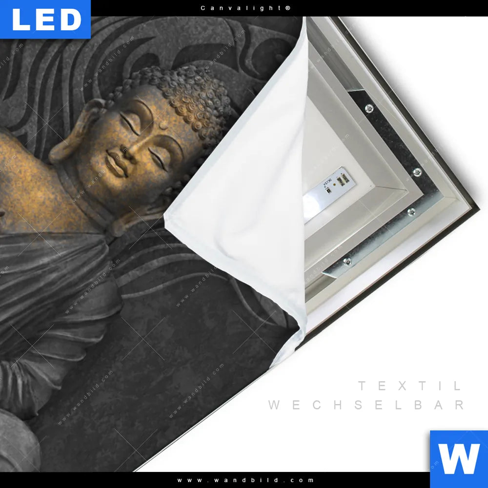 LED-Textilrahmen-Bild mit austauschbarem Buddha - Feng Shui Textil-Druck (Wechselbild)