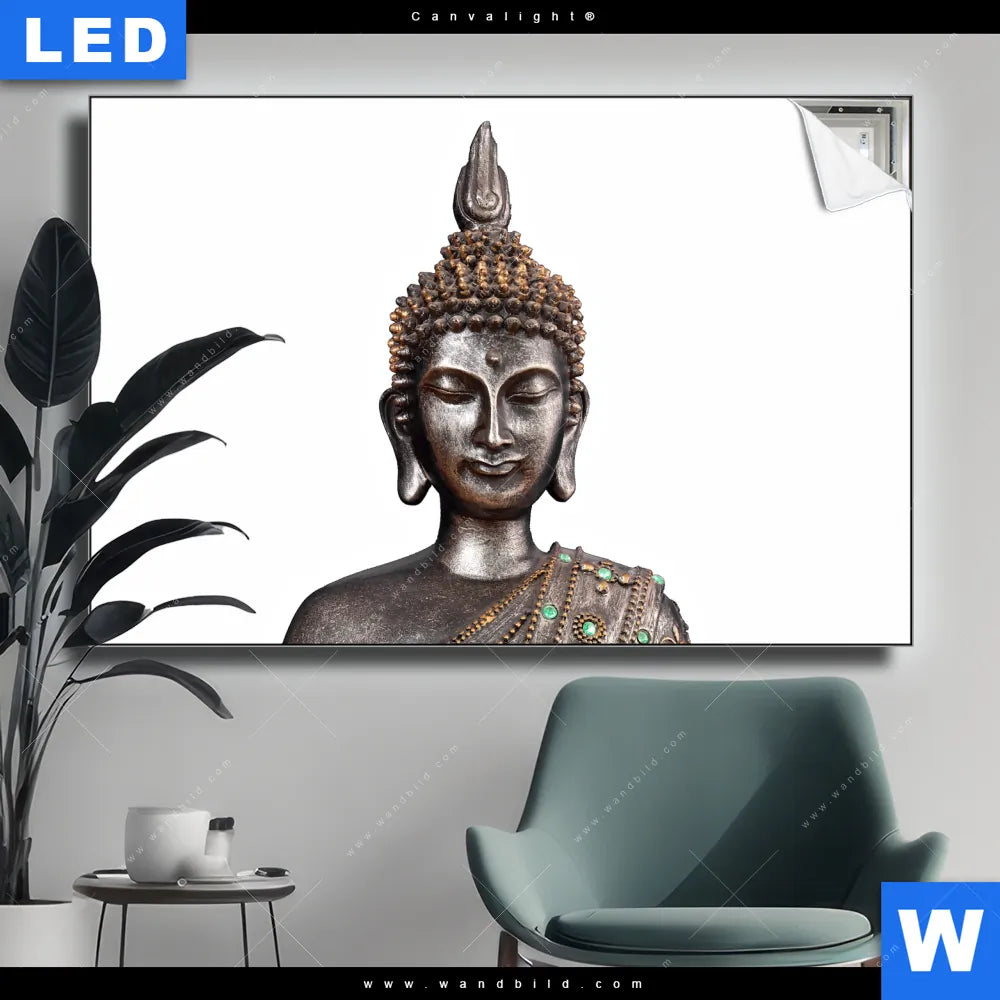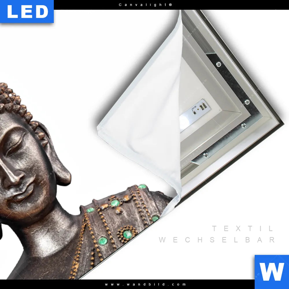 LED-Textilrahmen-Bild mit austauschbarem Buddha - Feng Shui Textil-Druck (Wechselbild)