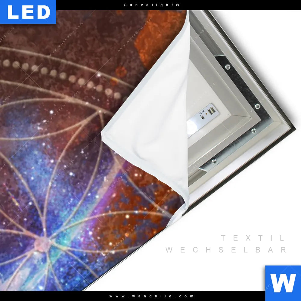 LED-Textilrahmen-Bild mit austauschbarem Buddha - Feng Shui Textil-Druck (Wechselbild)