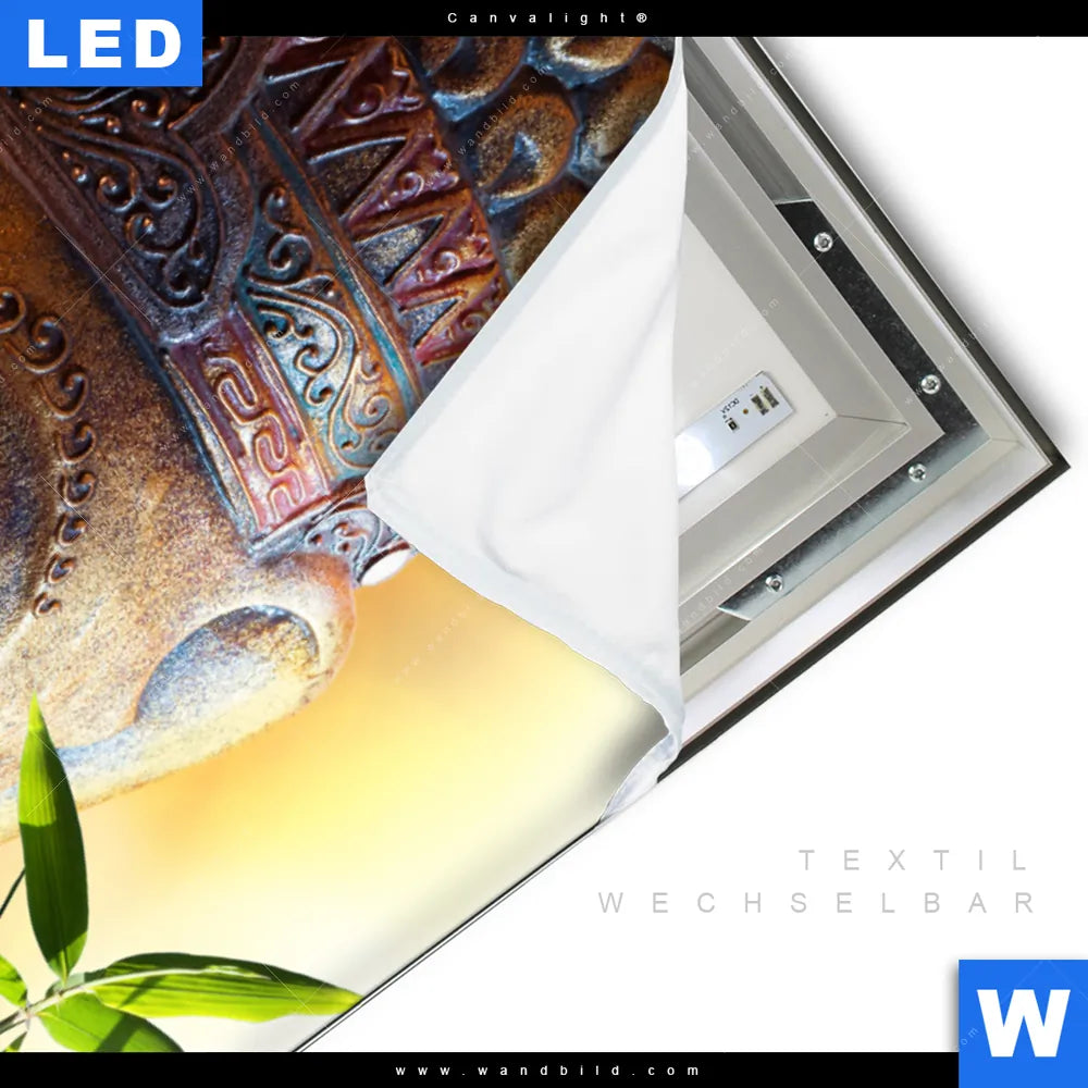 LED-Textilrahmen-Bild mit austauschbarem Buddha - Feng Shui Textil-Druck (Wechselbild)