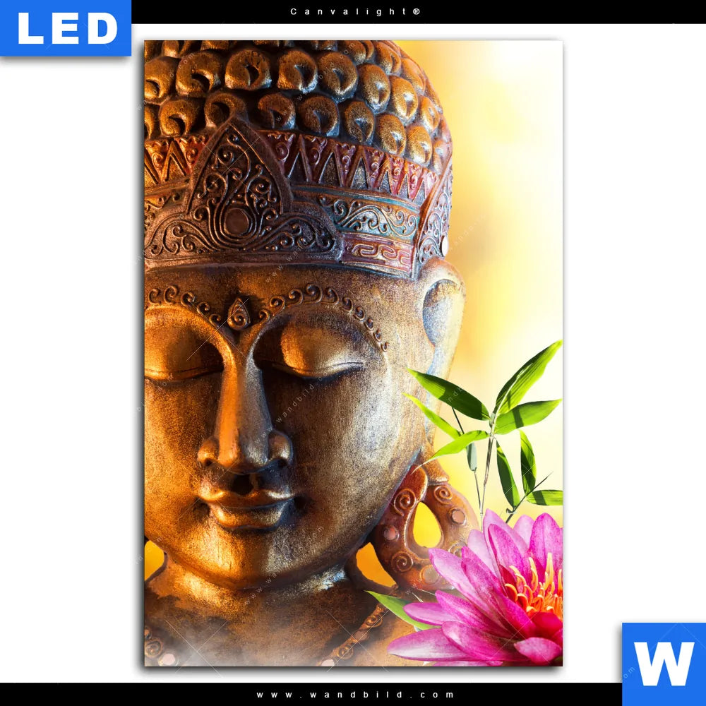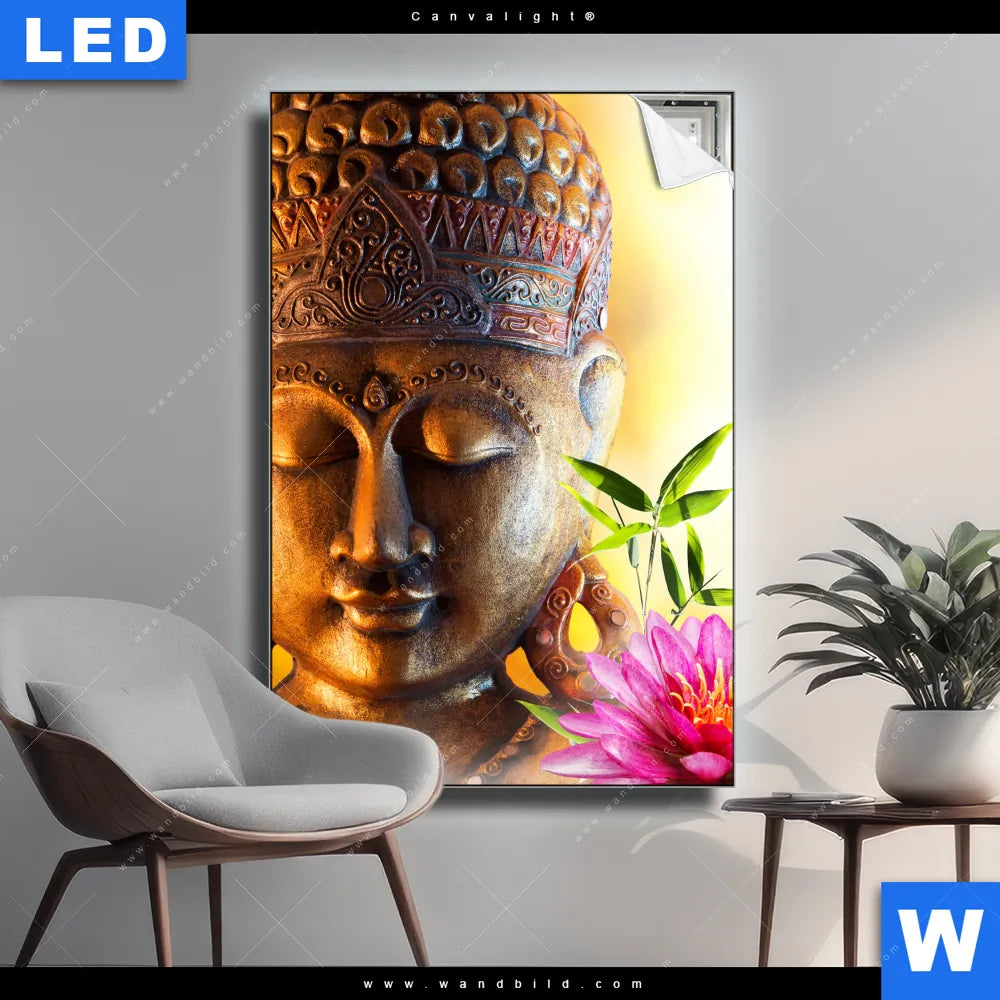 Canvalight® Leuchtbild | Buddha Kopf & Seerose | Hochformat