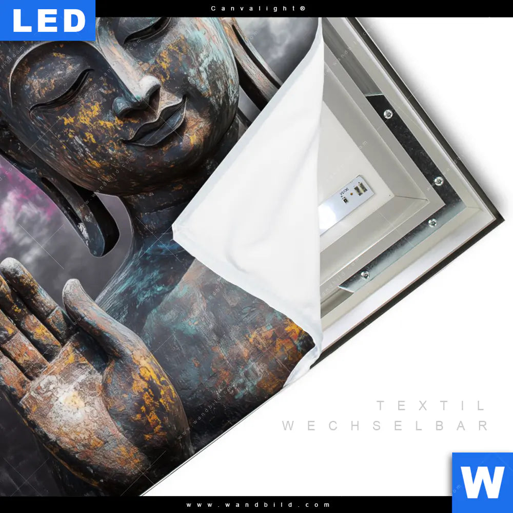 LED-Textilrahmen-Bild mit austauschbarem Buddha - Feng Shui Textil-Druck (Wechselbild)