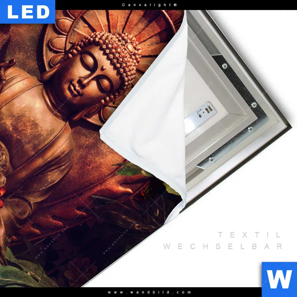 LED-Textilrahmen-Bild mit austauschbarem Buddha - Feng Shui Textil-Druck (Wechselbild)