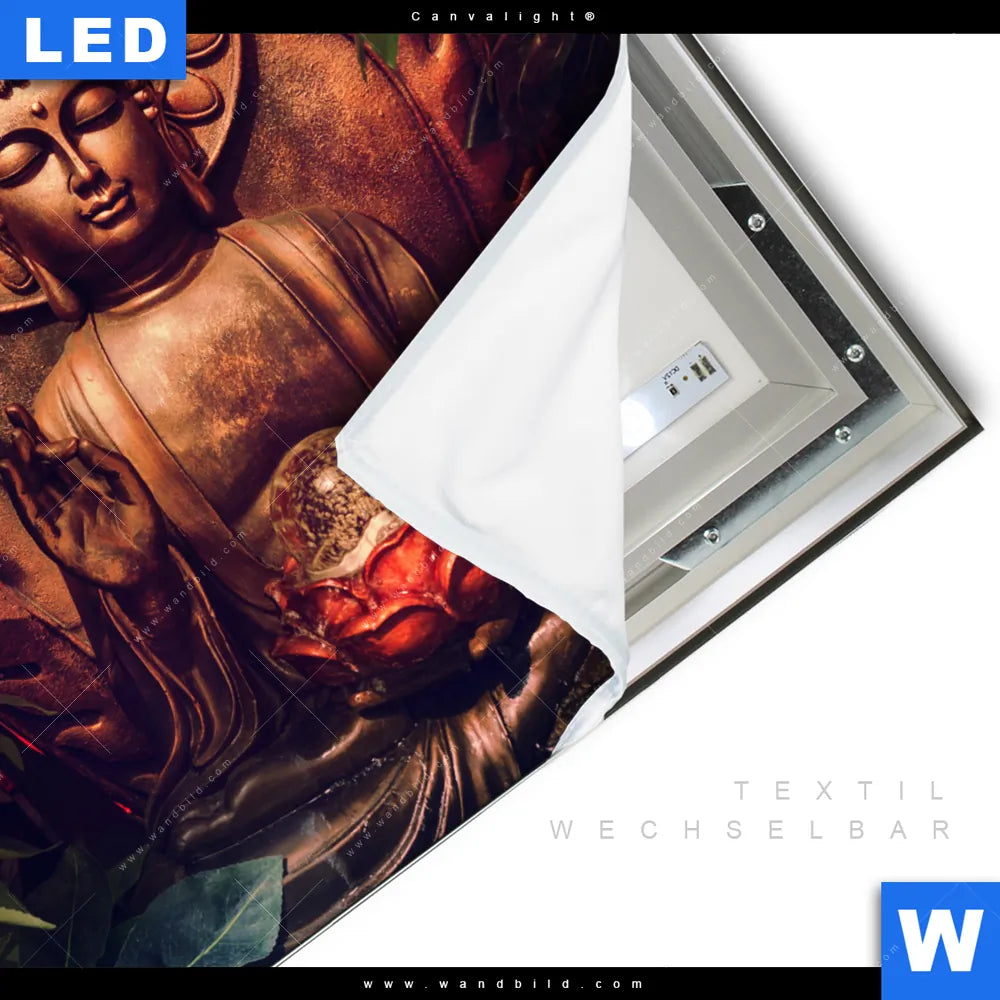 LED-Textilrahmen-Bild mit austauschbarem Buddha - Feng Shui Textil-Druck (Wechselbild)