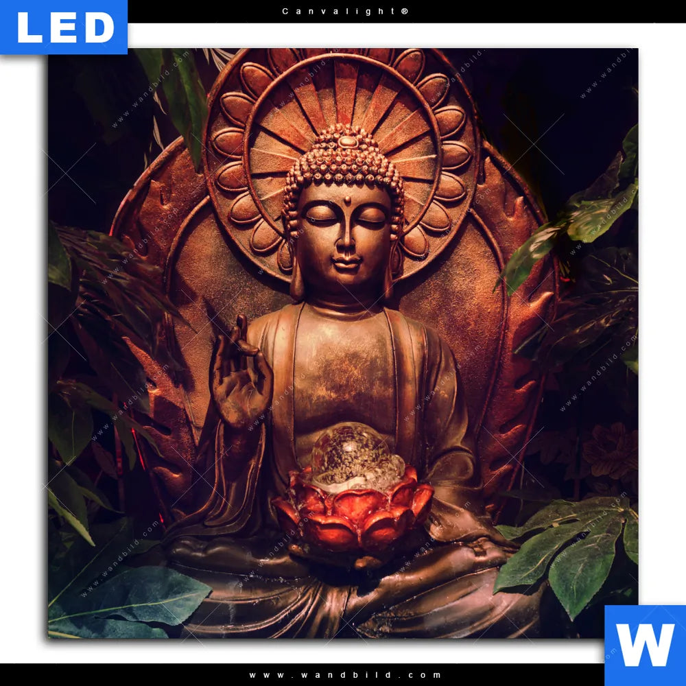 Canvalight® Leuchtbild | Buddha & Lotusblüte | Quadrat