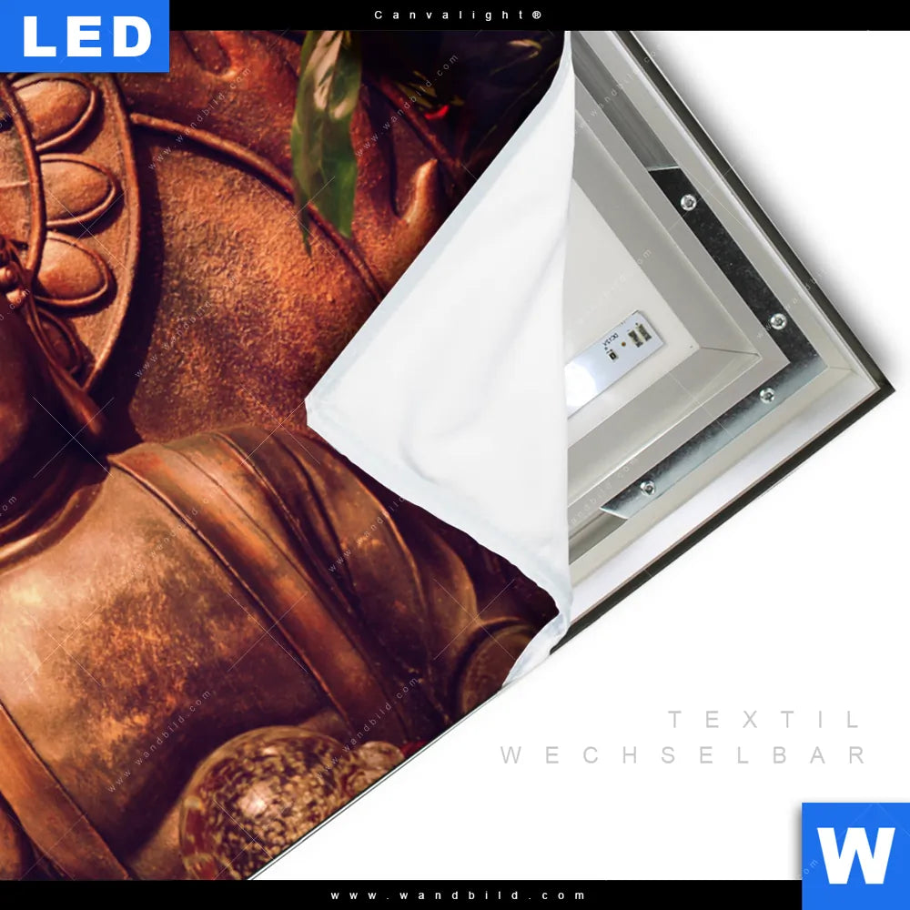 LED-Textilrahmen-Bild mit austauschbarem Buddha - Feng Shui Textil-Druck (Wechselbild)
