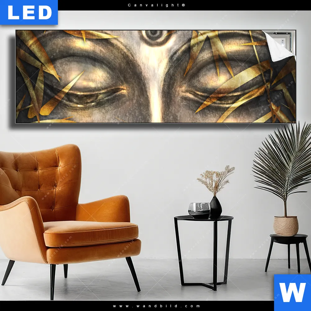 Canvalight® TEX Leuchtbild | Buddha Silber & Gold | Panorama