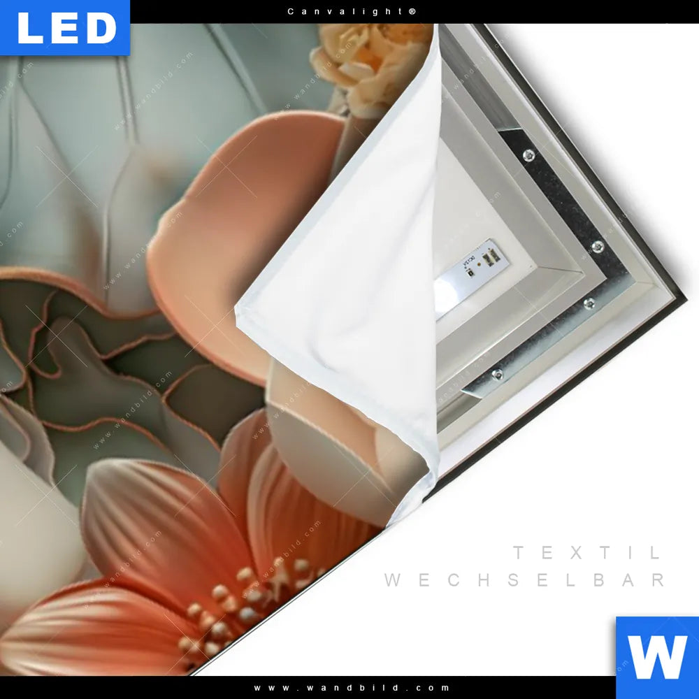 LED-Textilrahmen-Bild mit austauschbarem Buddha - Feng Shui, Blumen - Botanik Textil-Druck (Wechselbild)