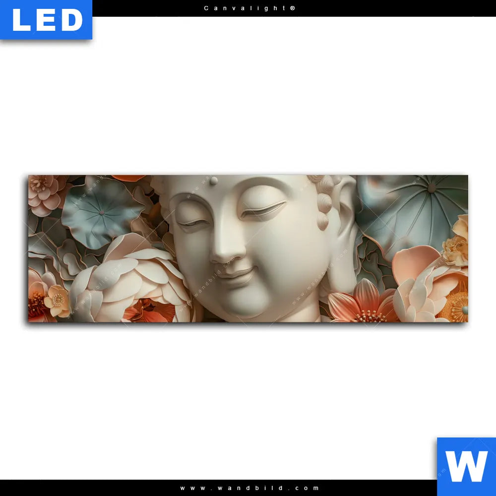 Canvalight® Leuchtbild | Buddha-Statue mit Blüten | Panorama