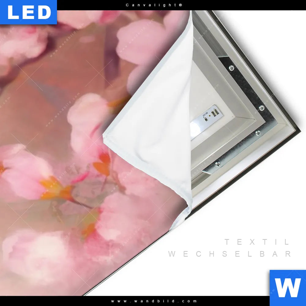 LED-Textilrahmen-Bild mit austauschbarem Buddha - Feng Shui, Blumen - Botanik Textil-Druck (Wechselbild)