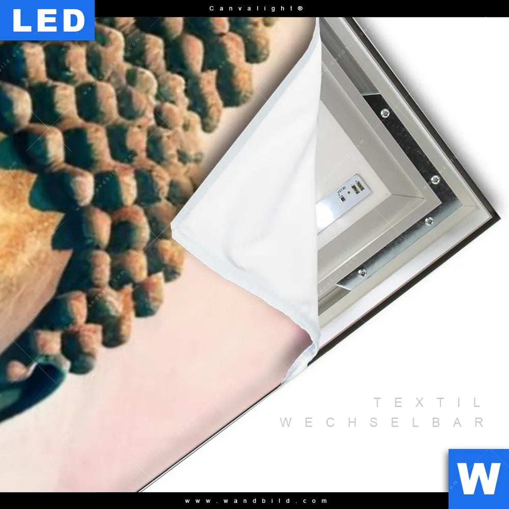 LED-Textilrahmen-Bild mit austauschbarem Buddha - Feng Shui, Blumen - Botanik Textil-Druck (Wechselbild)