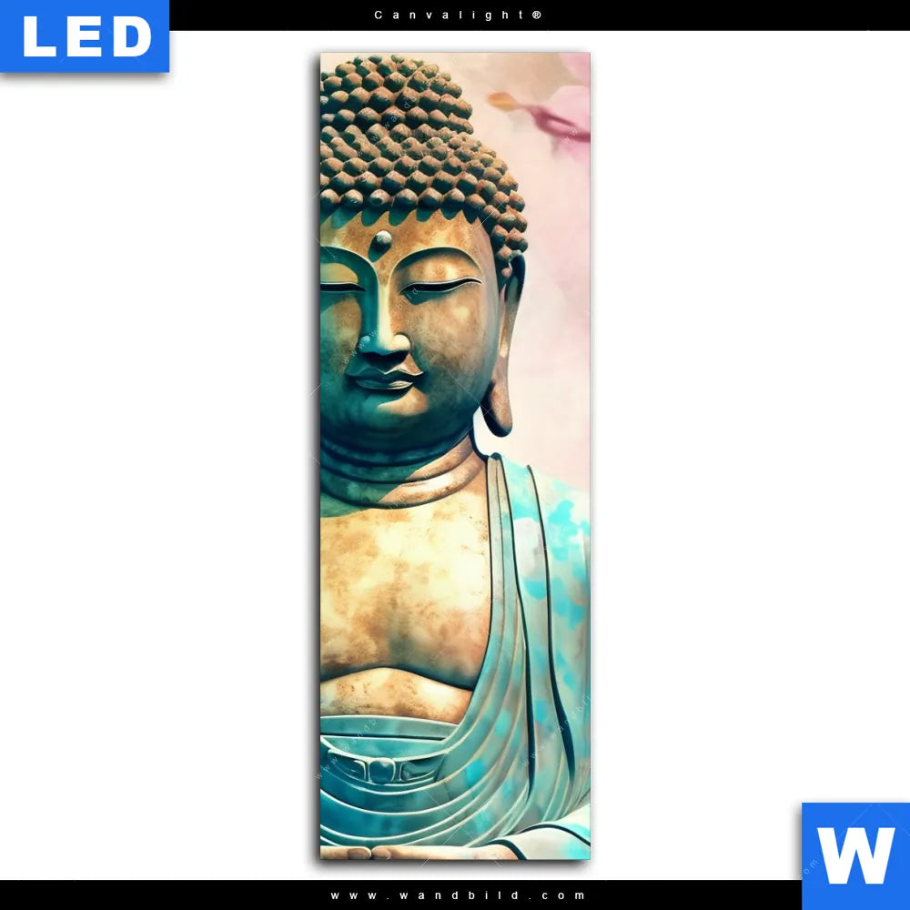Canvalight® Leuchtbild | Buddha Statue mit Kirschblüten | Schmal