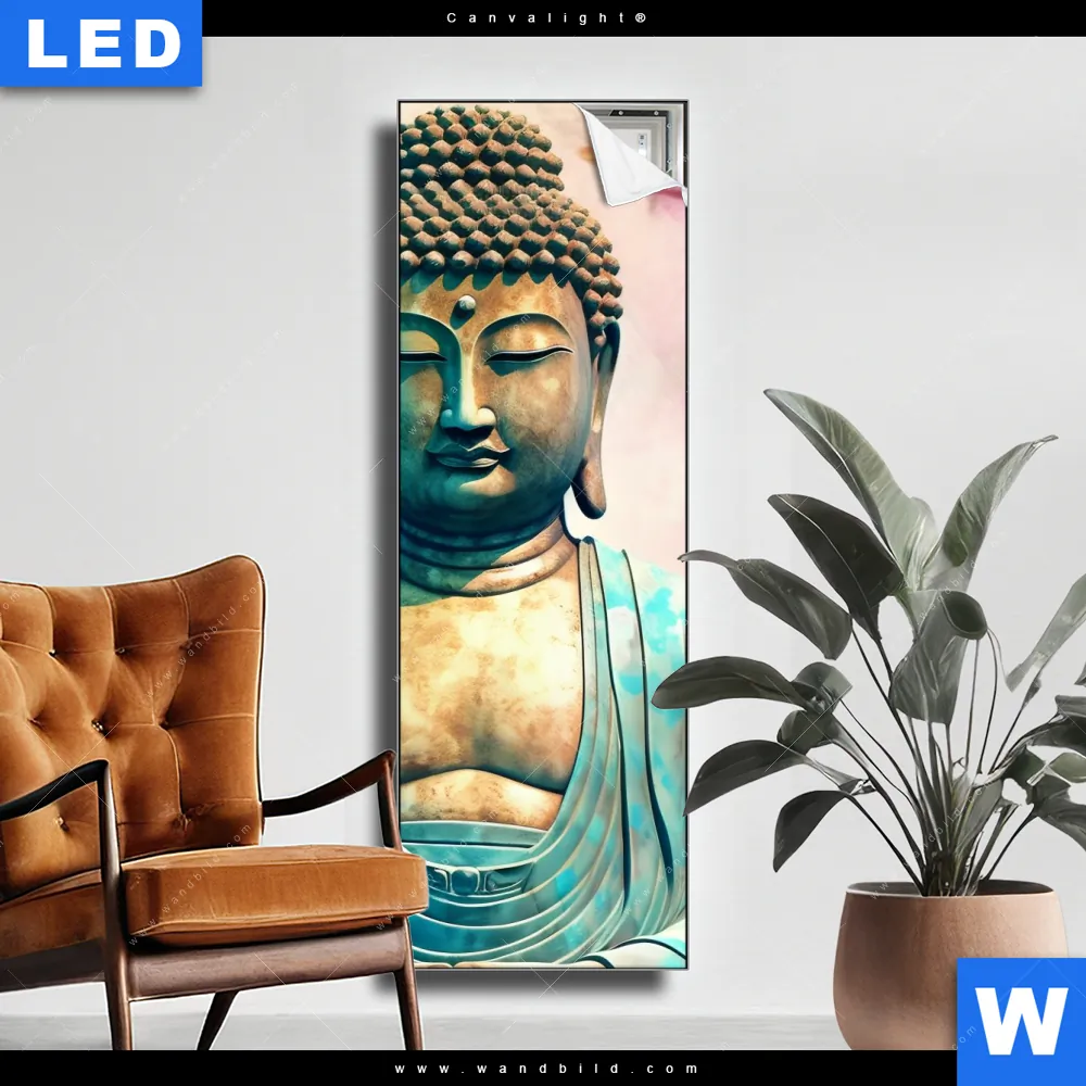 Canvalight® TEX Leuchtbild | Buddha Statue mit Kirschblüten | Schmal
