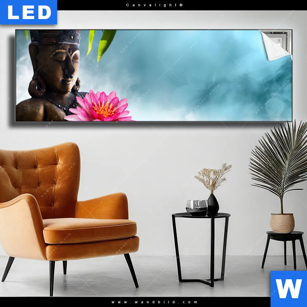 Canvalight® TEX Leuchtbild | Buddha Statue mit Seerose | Panorama