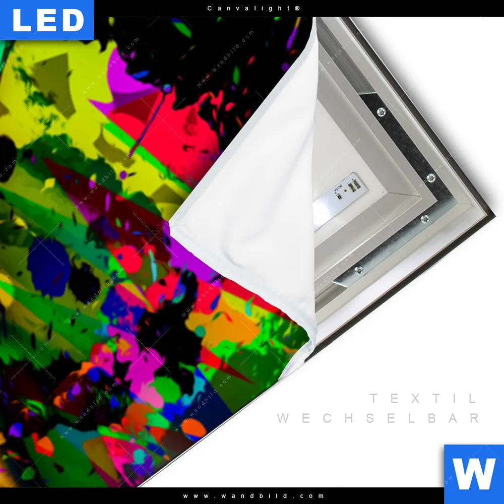 Canvalight® TEX Leuchtbild | Bunte Bulldogge Schwarz | Schmal