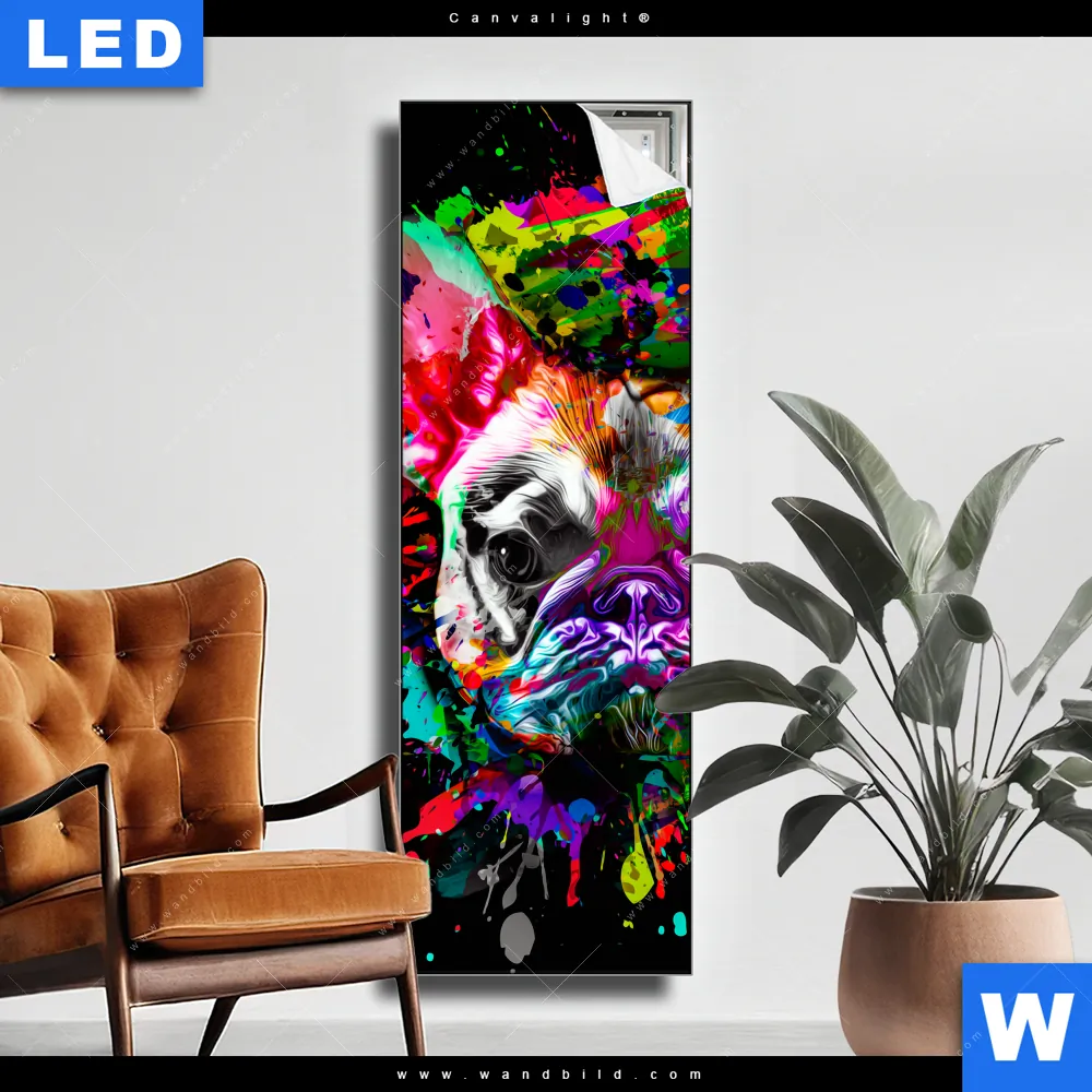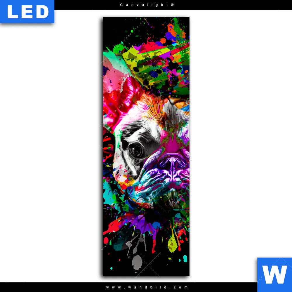 Canvalight® Leuchtbild | Bunte Bulldogge Schwarz | Schmal
