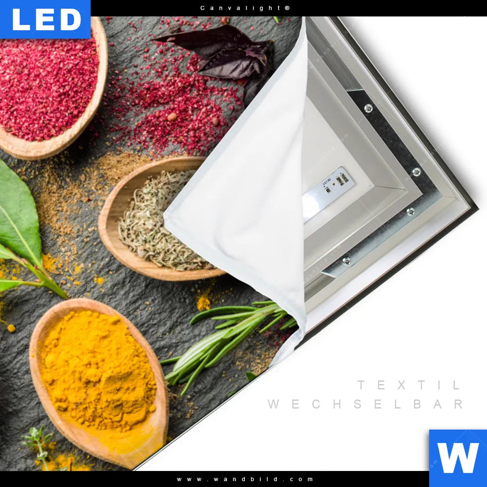 LED-Textilrahmen-Bild mit austauschbarem Essen - Trinken Textil-Druck (Wechselbild)