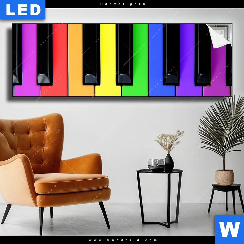 Canvalight® TEX Leuchtbild | Bunte Klaviertasten | Panorama