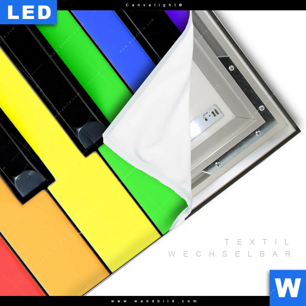Canvalight® TEX Leuchtbild | Bunte Klaviertasten | Quadrat