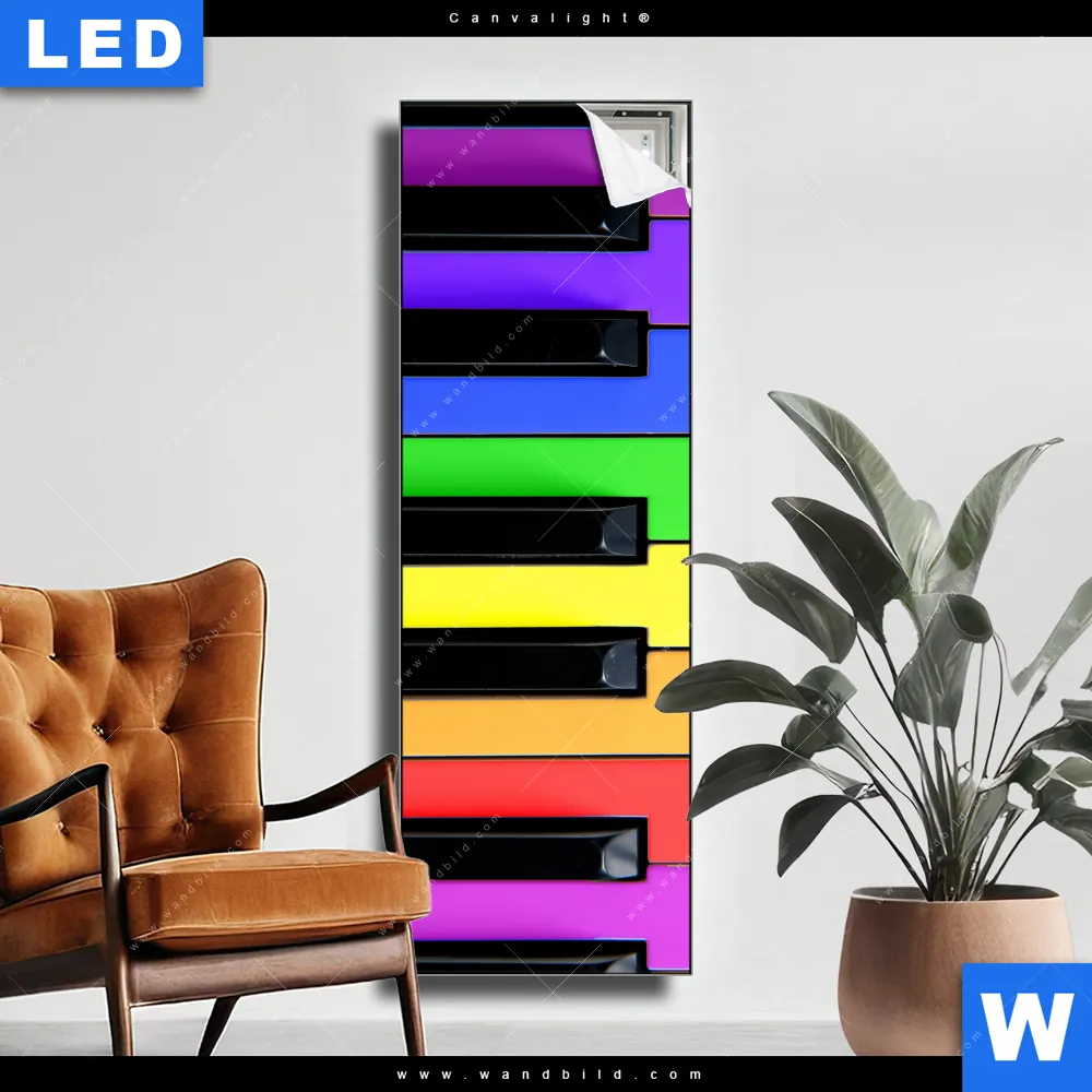 Canvalight® TEX Leuchtbild | Bunte Klaviertasten | Schmal