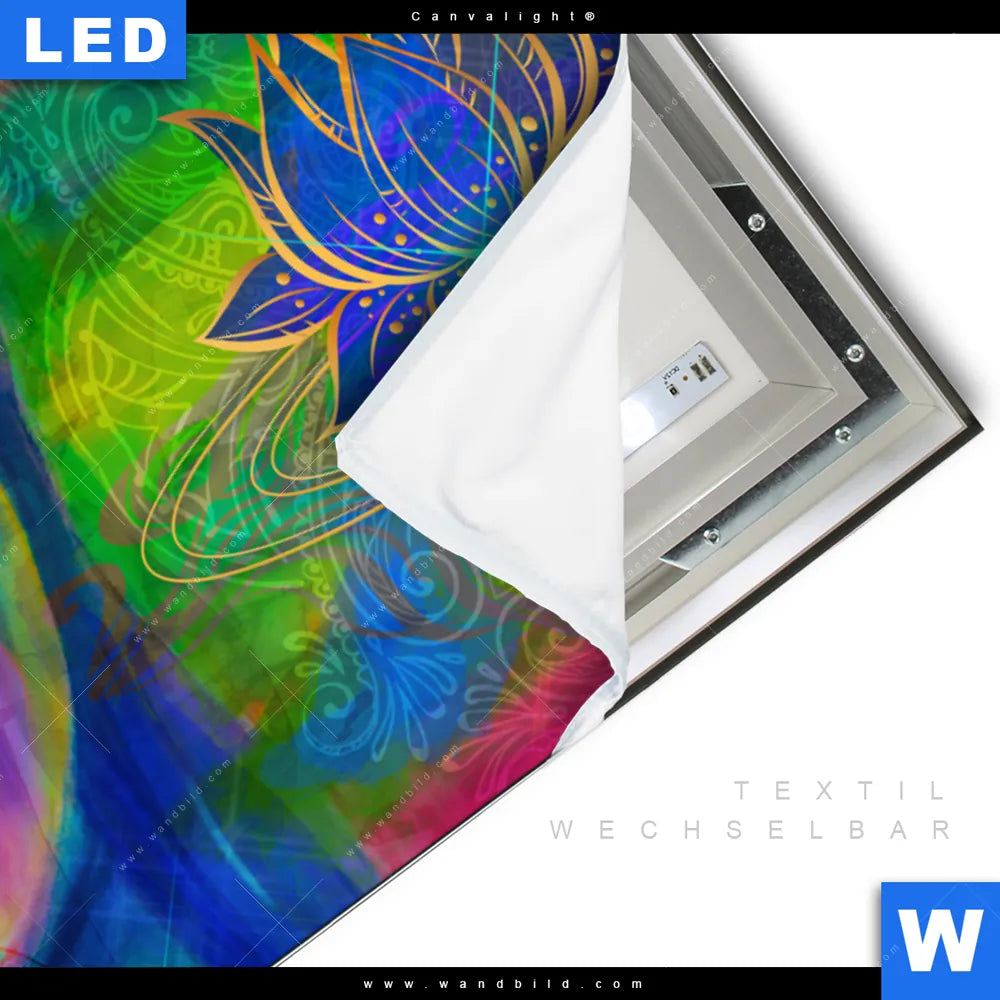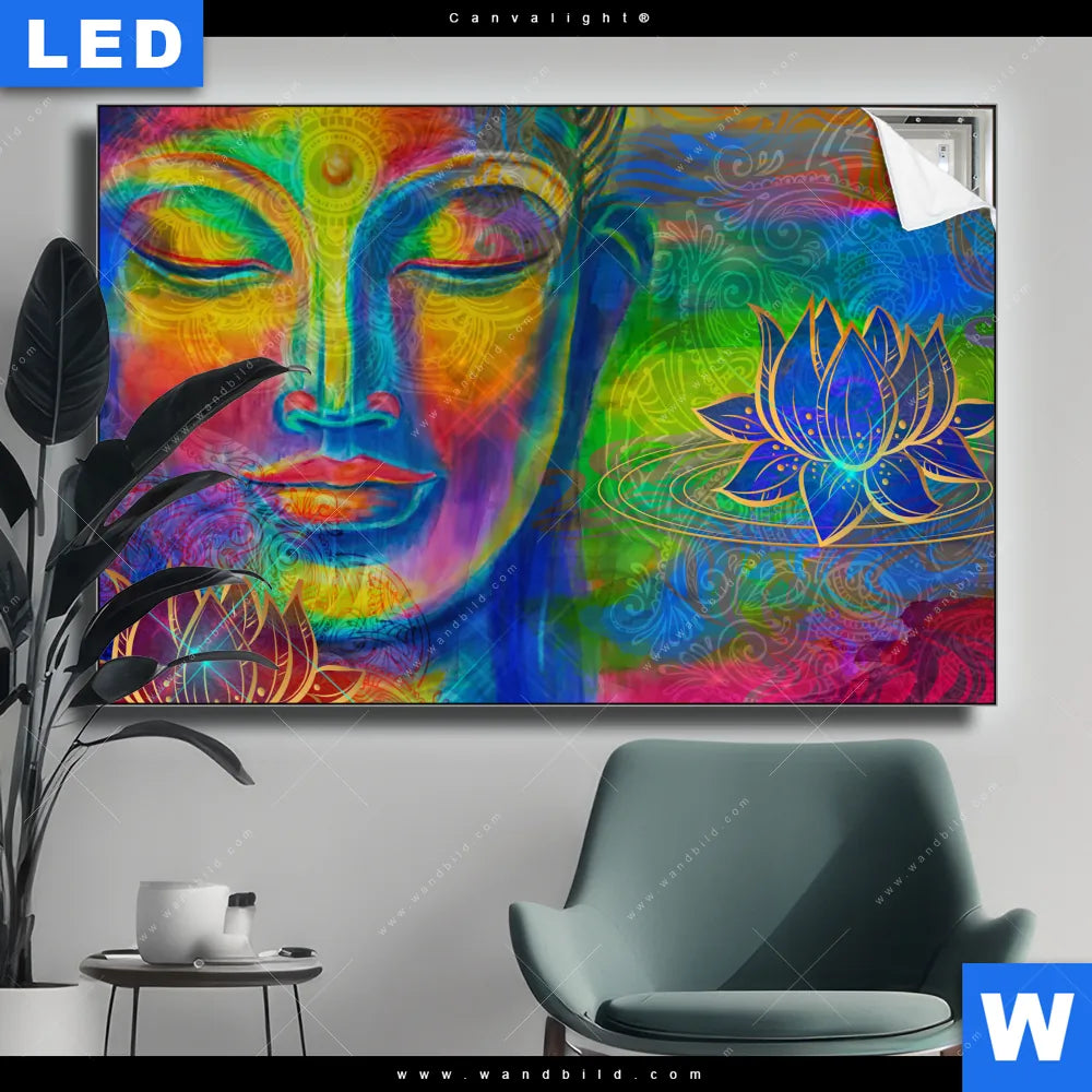 Canvalight® TEX Leuchtbild | Bunter Buddha No.2 | Querformat