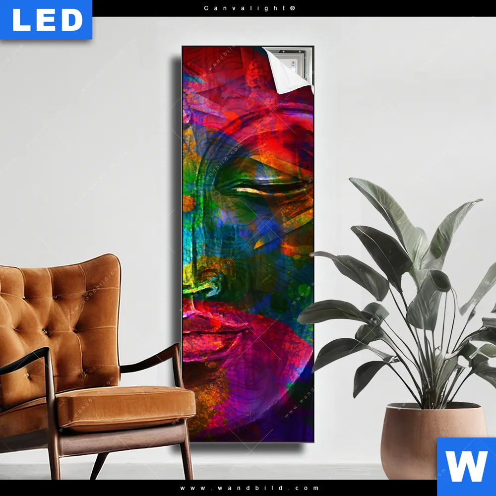 Canvalight® Leuchtbild | Bunter Buddha | Schmal