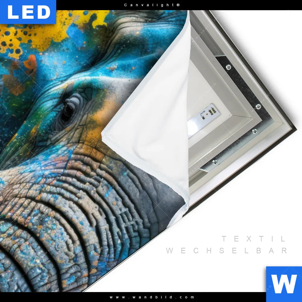 Canvalight® TEX Leuchtbild | Bunter Elefant | Hochformat