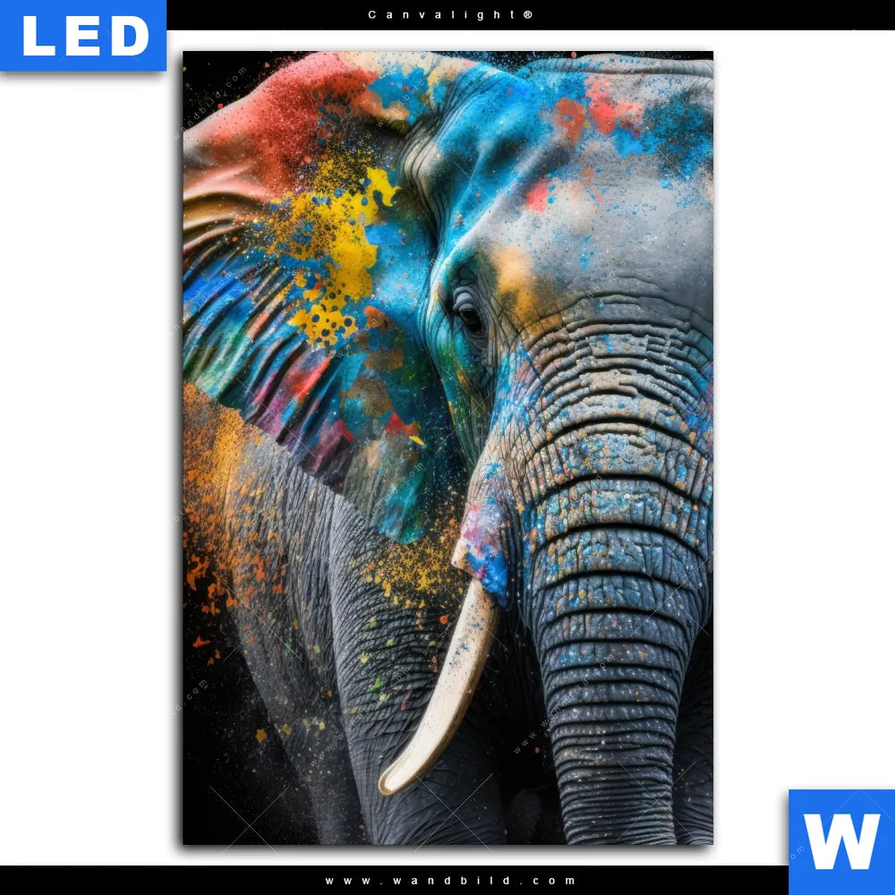 Canvalight® Leuchtbild | Bunter Elefant | Hochformat