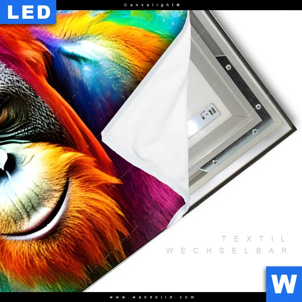 Canvalight® TEX Leuchtbild | Bunter Orang-Utan | Querformat