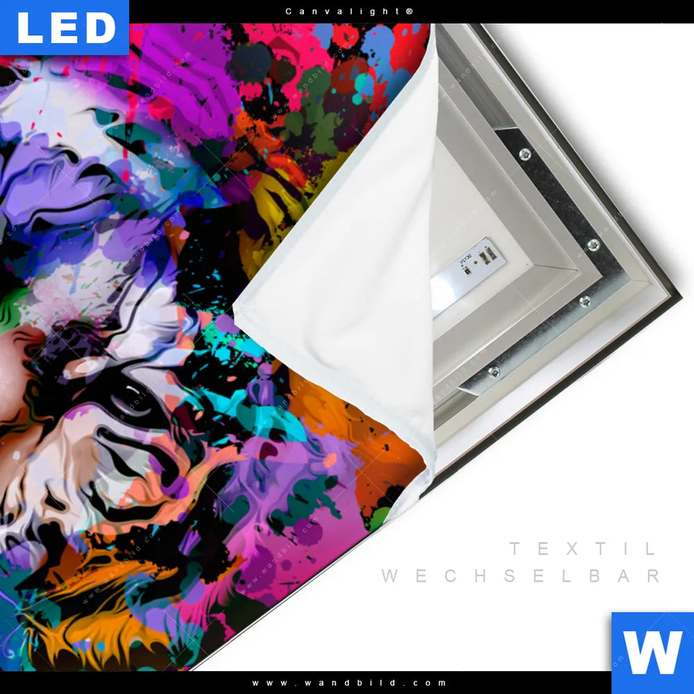 Canvalight® TEX Leuchtbild | Bunter Tiger Schwarz | Hochformat