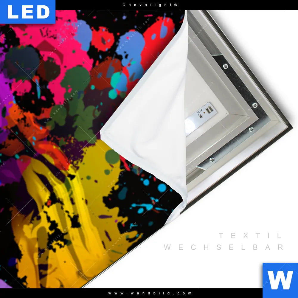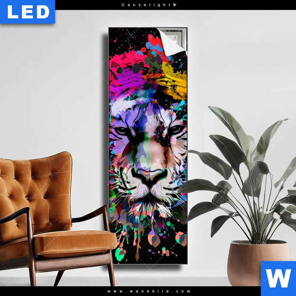 Canvalight® TEX Leuchtbild | Bunter Tiger Schwarz | Schmal