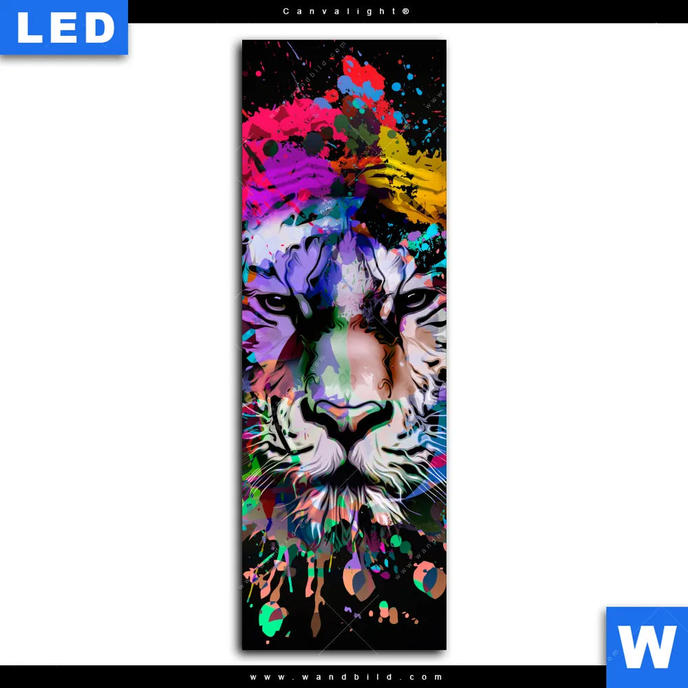 Canvalight® Leuchtbild | Bunter Tiger Schwarz | Schmal