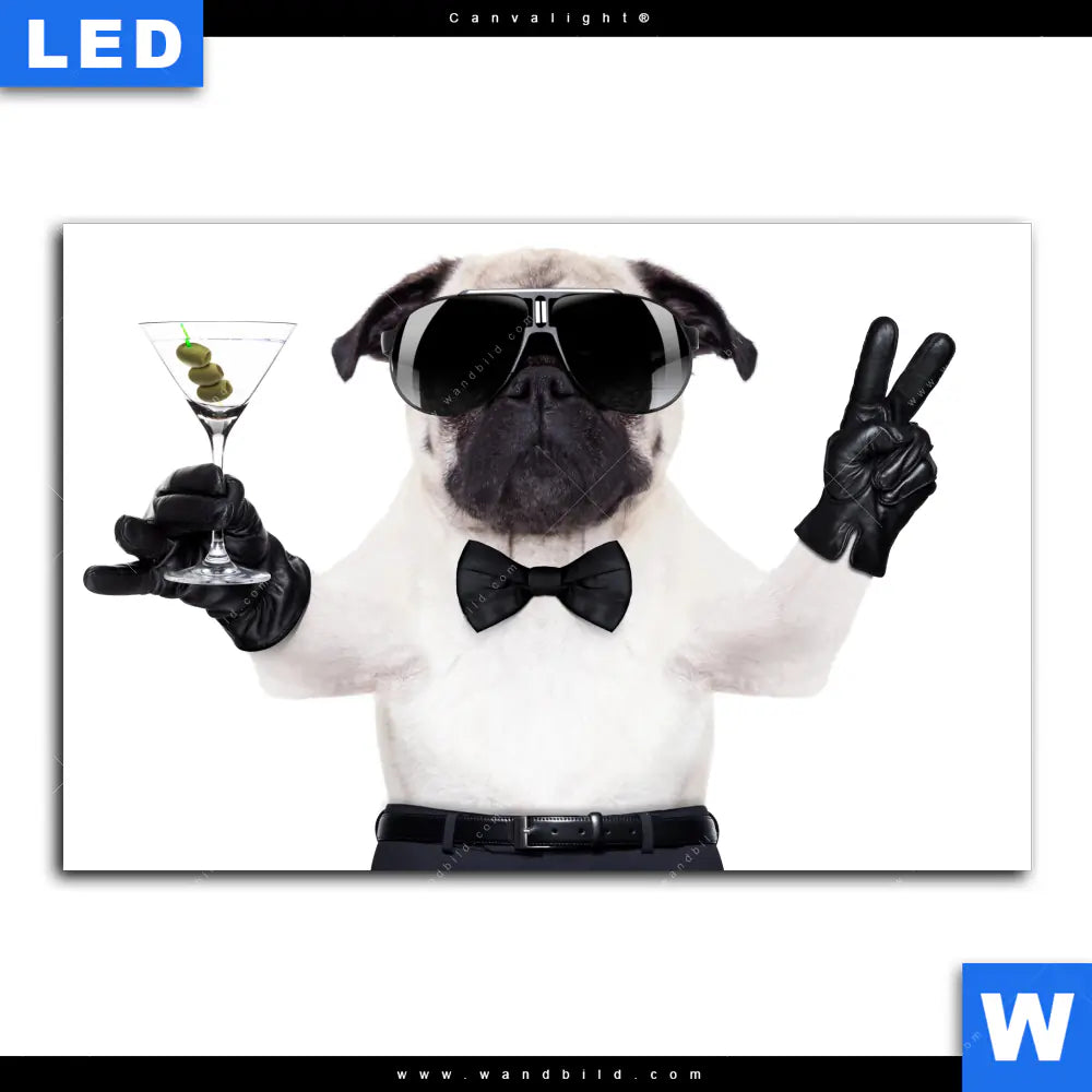 Canvalight® Leuchtbild | Cooler Mops mit Martini | Querformat