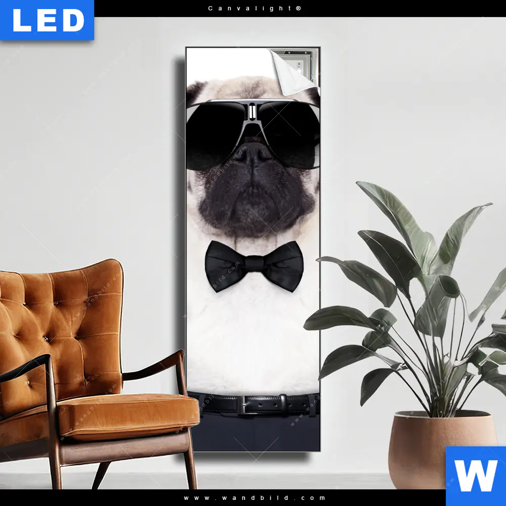 Canvalight® TEX Leuchtbild | Cooler Mops mit Martini | Schmal